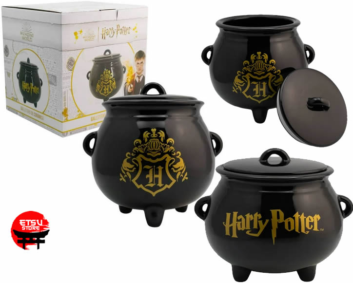 Galletero de Cerámica Decorativo, Caldero Mágico Harry Potter en 3D con Tapa Hermética y Caja de Regalo, 21 cm de alto, 19 cm de largo y 22 cm de ancho